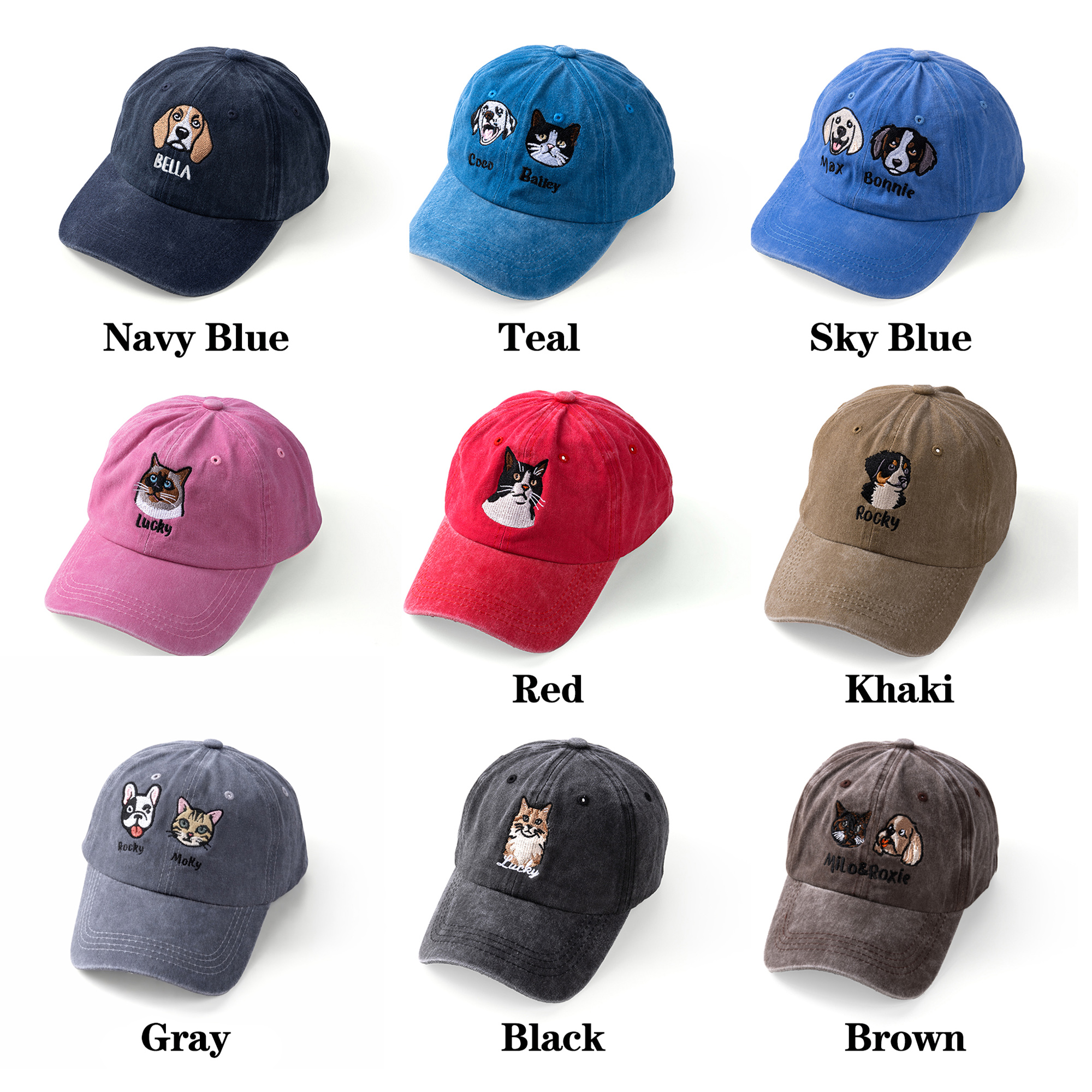 Personalized Touch - Add 1-3 pets' names below the embroidered portraits for a truly special accessory. Each hat is custom-designed with your chosen photos and texts, creating a one-of-a-kind piece that celebrates your furry friends.